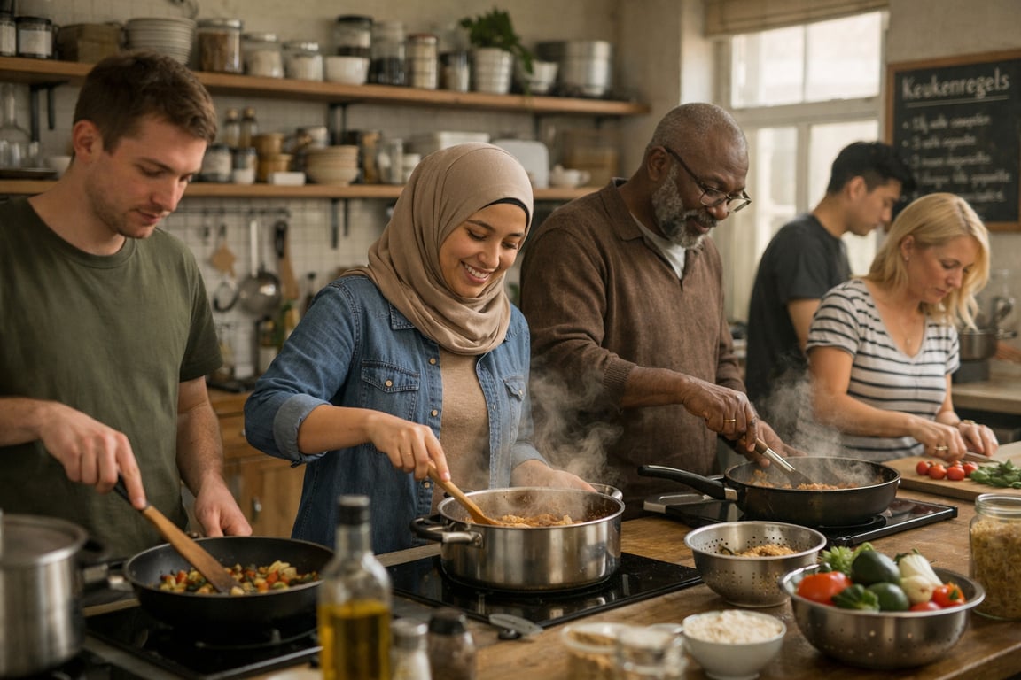 De keuze voor gedeelde voorzieningen moet praktisch en efficiënt worden ingericht, zodat wisselende diensten en gebruiksdruk niet leiden tot ruzies of kapotte apparatuur. Goede planning van ruimte-indeling en gebruikstijden kan hier veel problemen voorkomen.